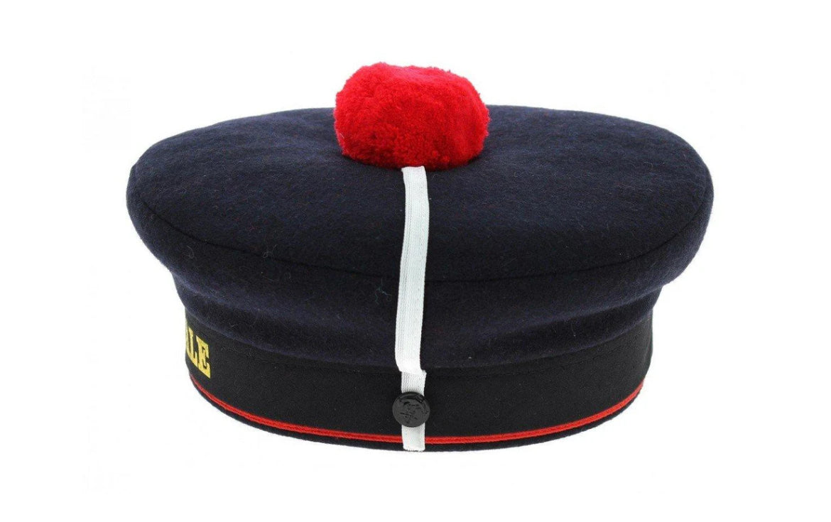 Traditional French Navy Cap with emblematic Red Pom Pom - detachable. Quilted lining - 50% wool 50% polyester. 57 CM circumference.