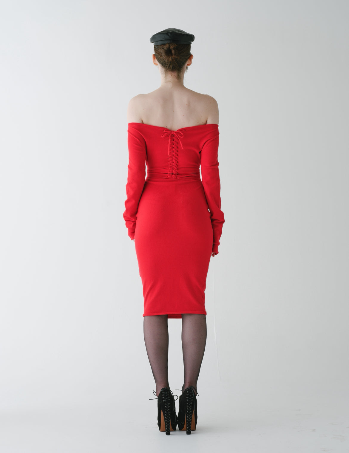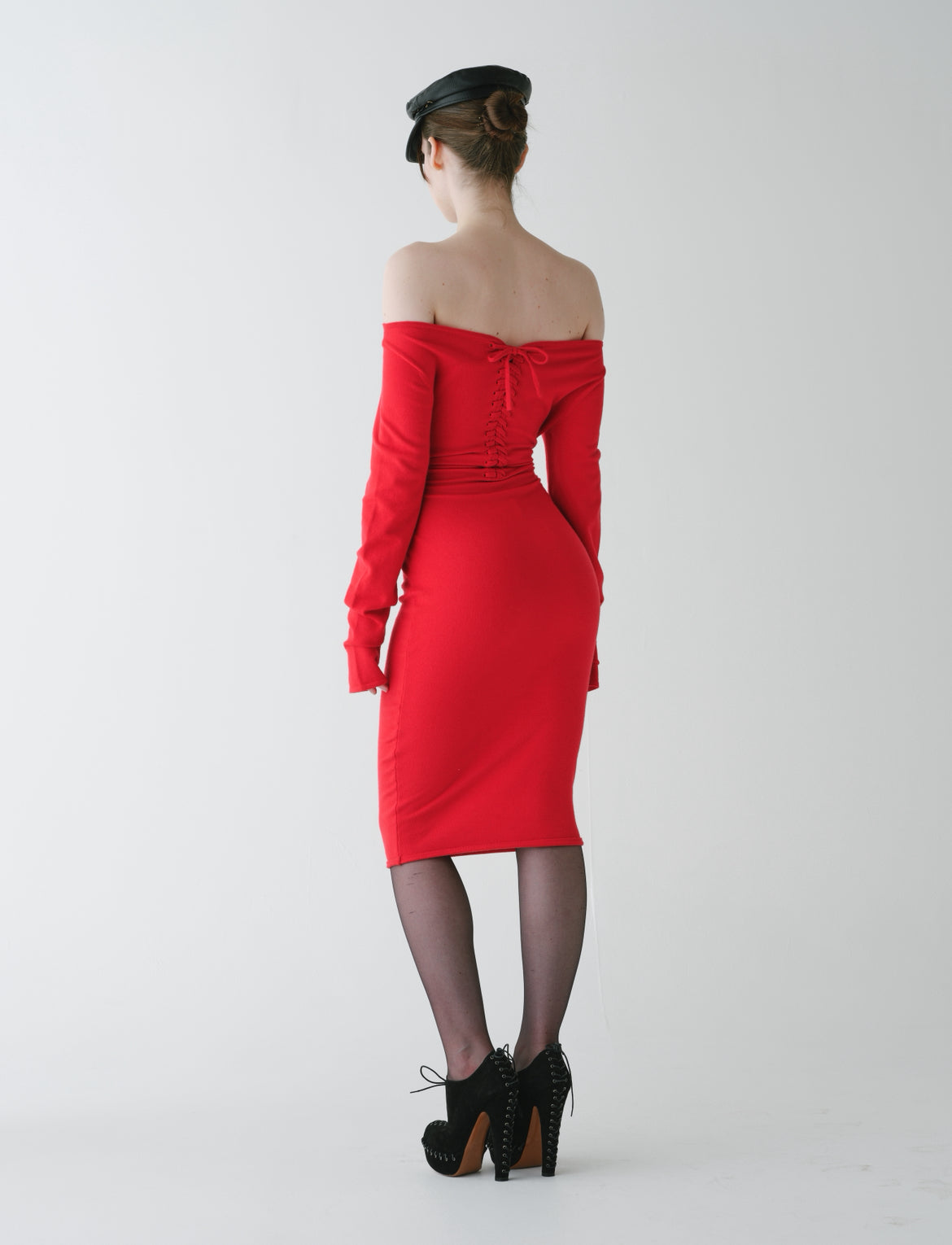 Lace up knit dress red