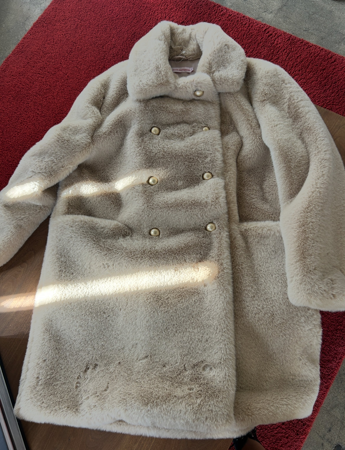 Light brown one size fits all luxurious one of a kind sample. Sister coat to the Pink Plush Coat.