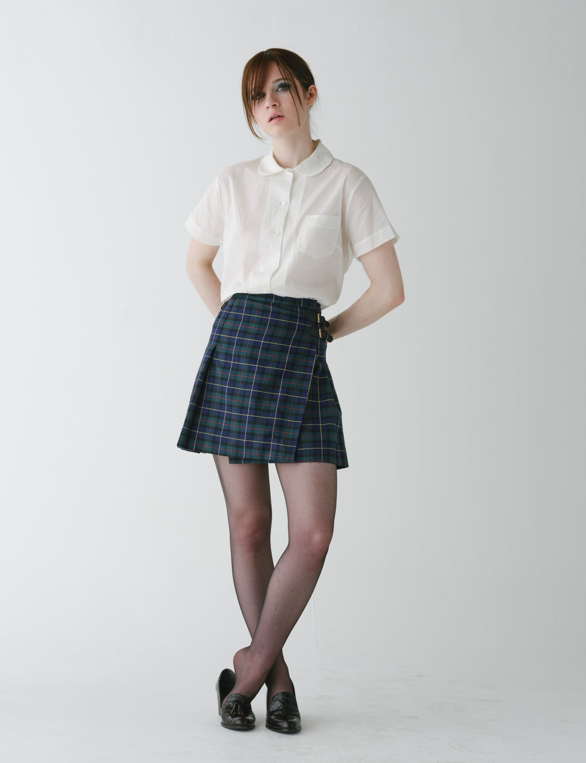 100% cotton - soft cotton voile loose fit Peter Pan collar button up shirt.