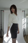- Polyester high waisted center back zipper